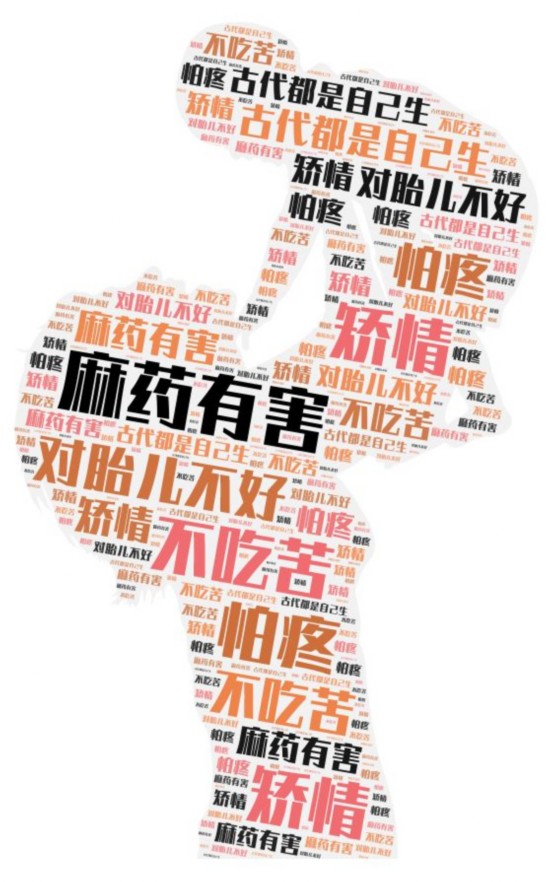 第三是孕产妇、家属对无痛分娩的认知程度较低。很多人对无痛分娩持怀疑态度,认为产妇硬膜外穿刺后,背部、腰部会落下病根,也有人害怕“麻药打多,娃儿要变傻的”。一些家属更看重对孩子的影响,照顾产妇的感受排在第二位,他们认为:“多少代都这样过来了,怎么你就不能生了?”