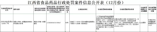 近日,南昌市食品药品监督管理局官方网站公布了2018年12月各区的一批食品药品行政处罚案件信息。