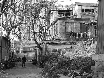 而清河三街西侧却静悄悄的,围挡里大片的残垣断壁,其间有几栋二三层的工棚,渣土垃圾从围挡周边倾泻出来。在小清河路边,拆迁围挡上还立着某建筑工程公司的牌子。在三街路口的垃圾站,环卫工人告诉记者,里面还有两个小院儿没拆呢!记者走进院子,果然看到一片废墟上还立着一些破旧的建筑,周围还有私搭乱建,房檐上挂着腊肉,晾晒着衣物,停放着车辆,十多口人仍住在这里。