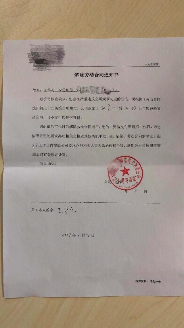 1月3日,深圳虐童事件举报者王华礼被其供职的家政公司开除。在王华礼向媒体提供的通知书上,解除劳动合同的依据是《劳动合同法》第三十九条第二款,这一条款是“严重违反劳动纪律或者用人单位规章制度”。王华礼对此颇感不服,他认为发布视频是为了公平正义,没有做错。大多数网友也替他叫屈,认为这不符合好人好报的基本观念。如果举报虐童会被开除,以后谁还敢管闲事?