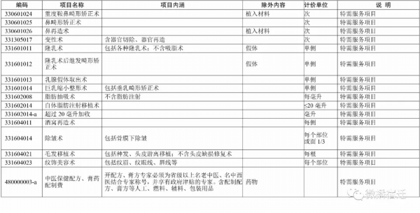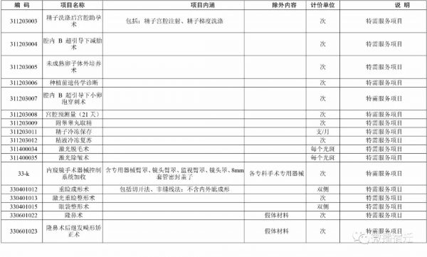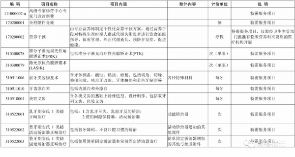 实行市场调节价医疗服务项目表(特需医疗服务部分)