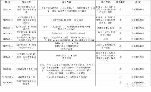 实行市场调节价医疗服务项目表(价格权限放开部分)