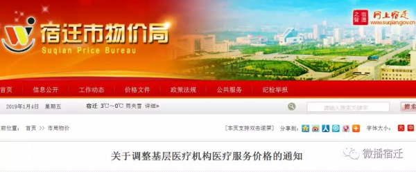 日前,宿迁市物价局、卫计委、人社局、财政局联合发布《关于调整基层医疗机构医疗服务价格的通知》,一起来看详细内容。