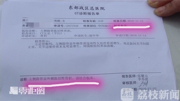 2017年9月,就读于南京工程高等职业学校的小赵(化名)在校内,被本校的沈老师(化名)驾车不慎撞伤,事发后,沈老师带小赵前往医院接受治疗,经检查,小赵的左脚跟骨体前缘撕脱性骨折,但并未进行手术。