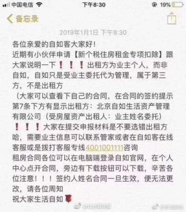 延伸阅读:自如租客填写个税App时填自如还是房东?自如明确:填组织