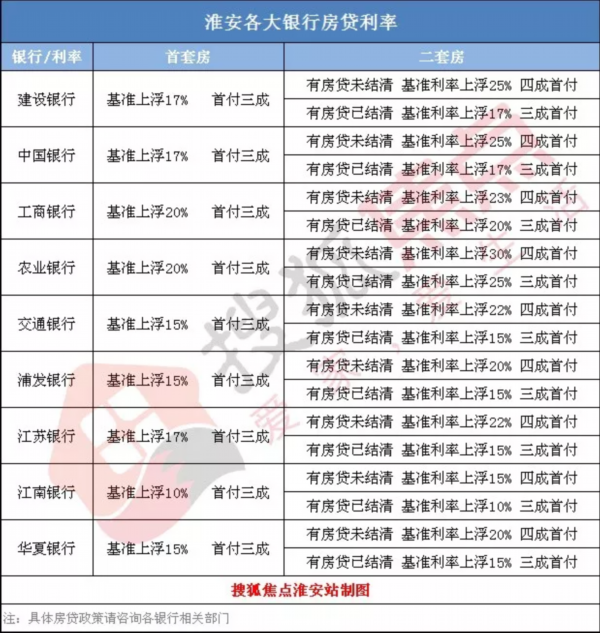淮安9家主流银行最新房贷利率调查↓↓↓