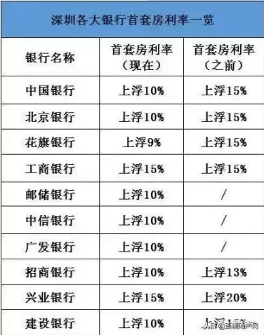 据悉,包括确认下调的花旗银行、中国银行、北京银行在内,深圳已有10家银行的首套房利率下调。