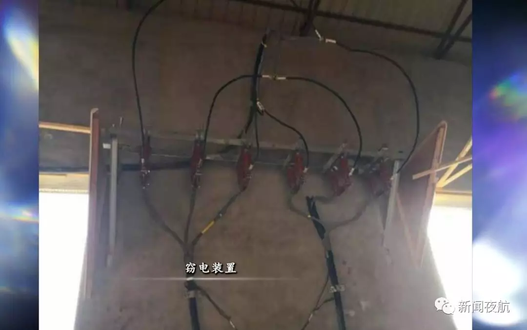 当时现场是一个厂房,厂房内我们发现三台变压器,有两台是一千千伏安(培)的,一台八百千伏安(培)。在从道边的一个高架杆子上外接的电源,通过顶管的方式进行窃电,就是走地下两三米深的,通过顶管的方式,顶到厂房内。