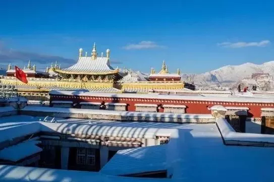 因为我俩要逛超市,所以就送到了大昭寺附近的神力广场。回到客栈跟大家交流的时候,才知道有很多这样的搭便车。后来拉萨下大雪的时候,四川小姐姐还微信我出行要注意安全,感谢之余分享给她初雪中哲蚌寺的美景。