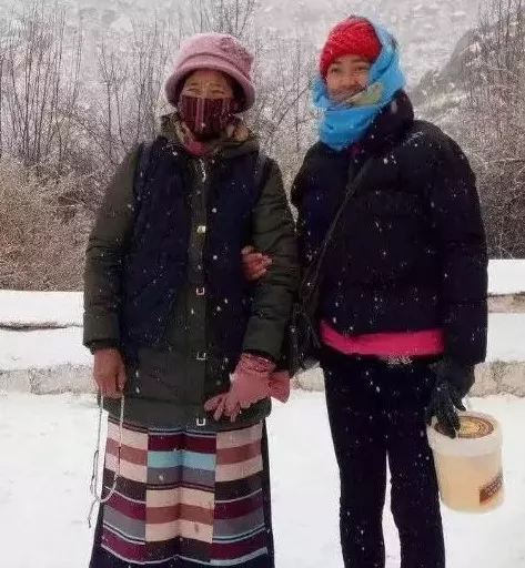 之后上了哲蚌寺,阿嬷教我们如何用青稞与小麦抛洒祈福。伴随着飘落的雪花,小姐姐搀扶着阿嬷慢慢的走,我们跟在后边。这个画面,很温馨!