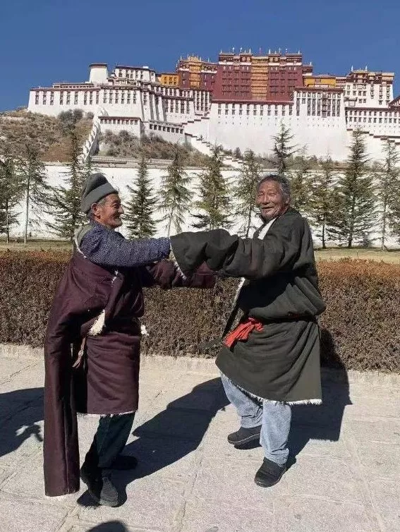 布达拉宫门前遇见的两位可爱的爷爷,我给他们拍完,还来检查看我拍的好不好