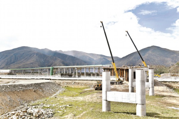图为拉萨市达孜区德庆镇境内桥梁铺设现场。本报记者 巴桑次仁摄