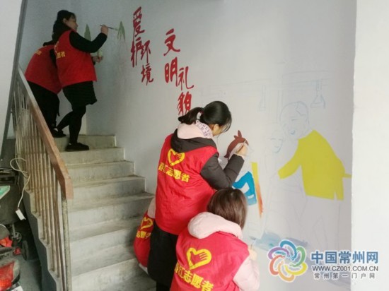 “同学们,今天我们要通过绘画的形式给社区的楼道做美化工作,用我们的双手给楼道穿一件漂亮的衣服。首先我们要根据手上拿的图纸来找到对应的颜料,四人互相搭档完成一幅画作……”常州市观云纪工作室负责人郑思军,向前来参与美化楼道的学生们详细讲解如何做好墙体绘画的步骤和方法。近日,一场由新北区春江镇录安洲社区、常州市新北区春江微公益志愿服务中心联合安家中心小学开展的“打造特色楼道美化居住环境”活动在录安洲社区居民楼道拉开了帷幕。