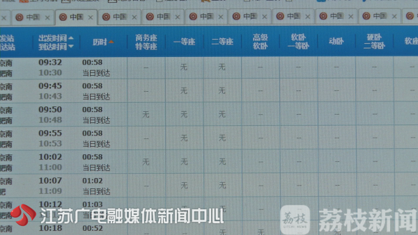 南京→徐州 南通、无锡、苏州 少量余票