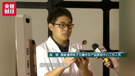 国家通用电子元器件及产品质检中心工作人员 邵鄂:网上这个小黑盒,专业术语叫特斯拉线圈。它的外形构造就是一个小黑盒,只要把按键按下,就产生一个瞬态的电磁场。