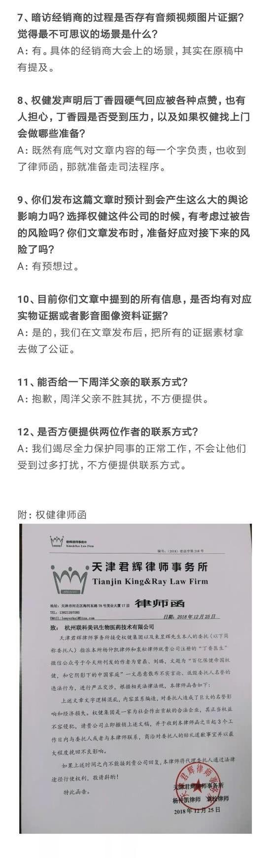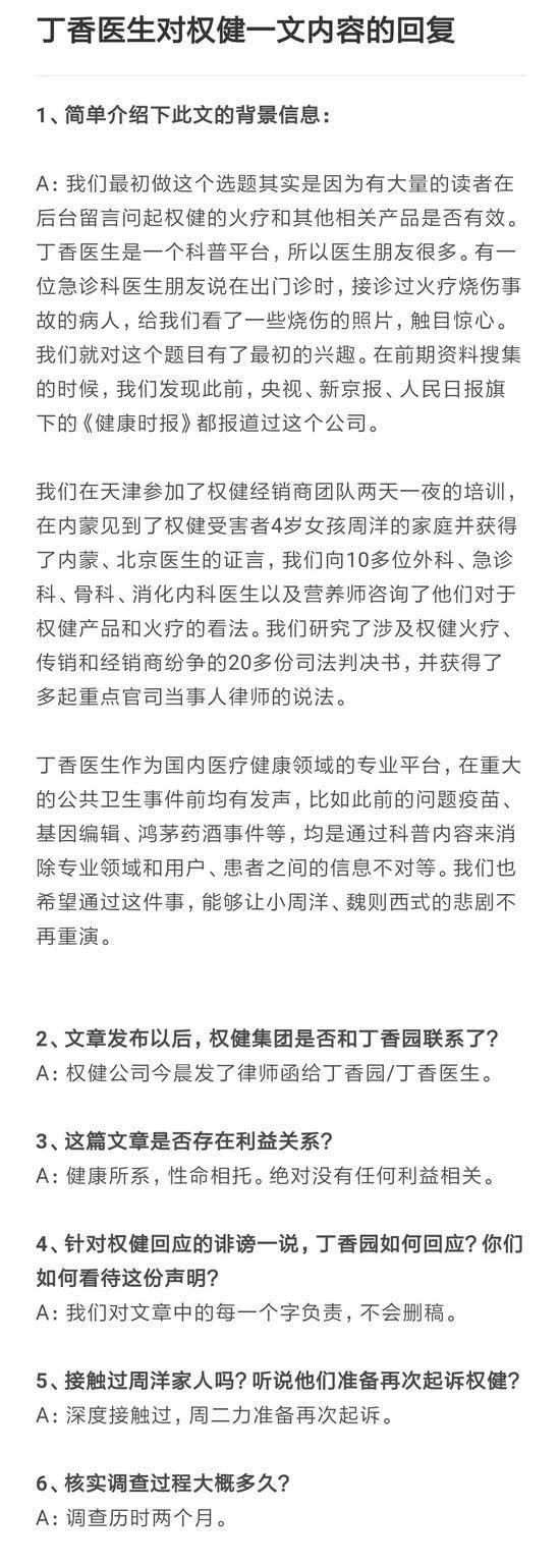 联科公司没有一一回应,但却推介了一篇题为《丁香医生对权健一文内容的回复》。回复内容对《百亿保健帝国权健,和它阴影下的中国家庭》的成文背景做了介绍。