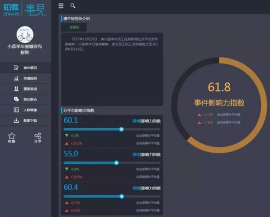 有意思的是,这篇文中退押金问题主要聚焦在摩拜身上,对于ofo,记者测试后表示“押金还是可以秒退的”。这与此前社交媒体平台网友们的感觉一致,在对于“哪家押金更难退”的问卷调查中,摩拜以61%的提及率占比第一,惨遭吐槽,而网友提到ofo的比例仅仅是5%。