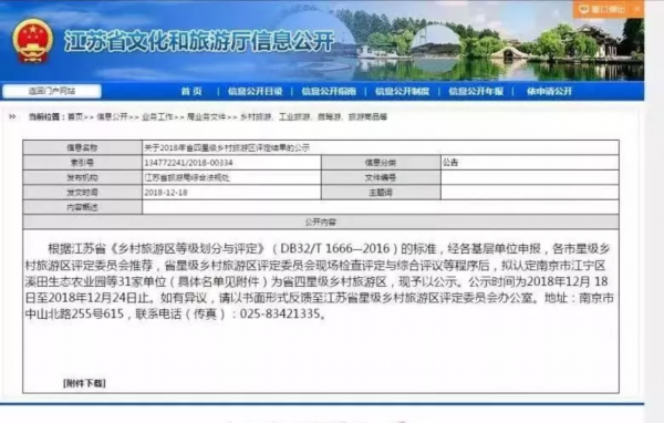 江苏省四星级乡村旅游区名单(2018年)