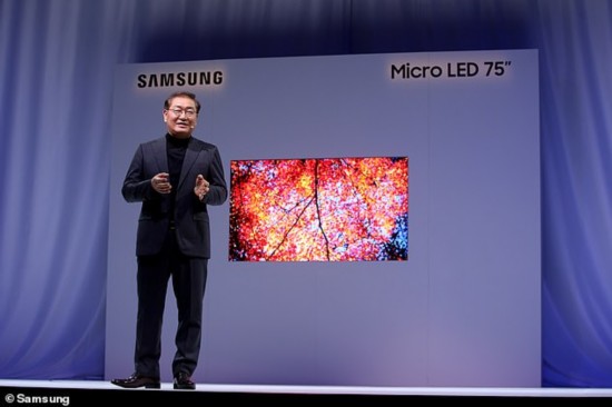 据英国《每日邮报》1月7日报道,韩国三星公司在CES之前的预展中展示了改进版Micro LED 技术。显示屏是模块化的,可以改变形状和大小。为了演示,公司推出了一面75英寸的显示屏和一面219英寸的电视墙。