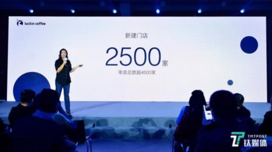 瑞幸创始人、CEO钱治亚在2019年战略沟通会上发布“新建门店2500家”的目标