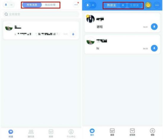 聊天宝的聊天功能与子弹短信一脉相承,除了顶部的模块设置有所变化外(将“所有消息”、“稍后处理”变更为“熟朋友”、“星标”、“生朋友”),其他并无差异。