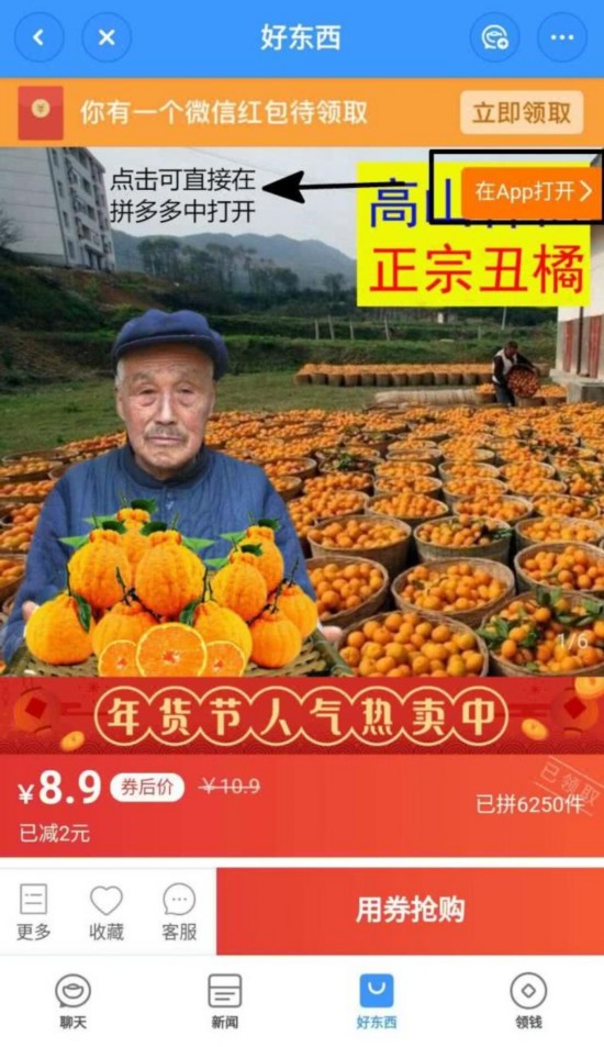 其次,在“好东西”中点击商品,可以直接跳转到拼多多中打开。