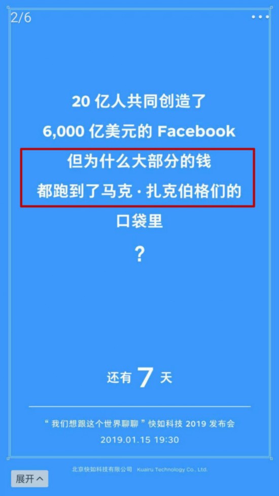 快如在海报文案里表达了:没有用户在社交平台上的活跃,就不会形成诸如Facebook等的社交软件巨头,但是用户并没有分到社交软件赚的钱。