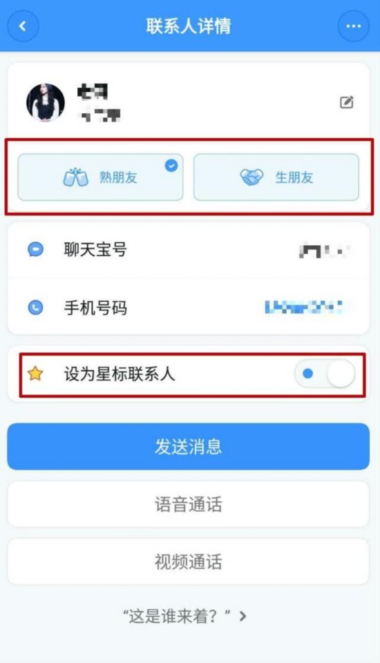 同时,用户可在联系人详情中手动将好友设置为“熟朋友”、“生朋友”或者“星标联系人”。三类联系人的消息将分别进行展示。