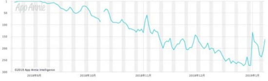 (子弹短信在免费社交榜排名趋势 数据来源:App Annie)