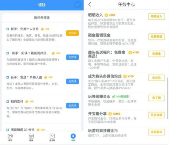 (左:聊天宝“领钱” 右:趣头条)
