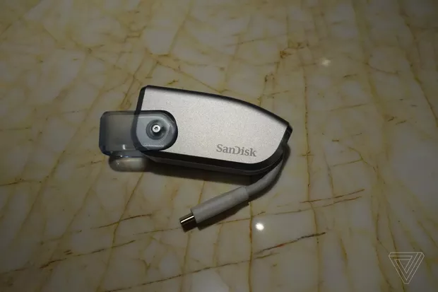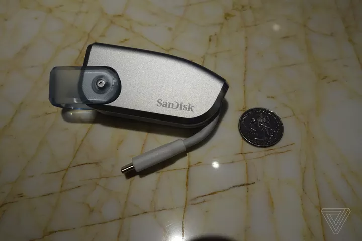 这款闪存卡还没有名称,也未标识价格和发布日期。我们称它为闪存卡也并不准确,因为它有一个集成的USB-C接口,所以比起“非常大的闪存驱卡”, 它更像是一个“非常小的固态硬盘(SSD)”。