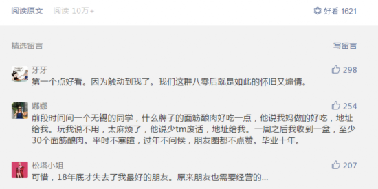 昨晚,咪蒙在头条推出了一条关于闺蜜和友情的文章,毫无防备的扎心。从前,我们的友情直接而热烈,我们和闺蜜无话不说,难舍难分;而现在,我们的友情淡漠了、克制了,我们渐渐不再联系对方,即便提起对方依然是骄傲的语气,但经常忘记联系。正当读者们沉浸在各自缅怀友情的遗憾之中时,才猛然发现这是一条广告。这次推出的是故宫和咪蒙联名出品的围巾。