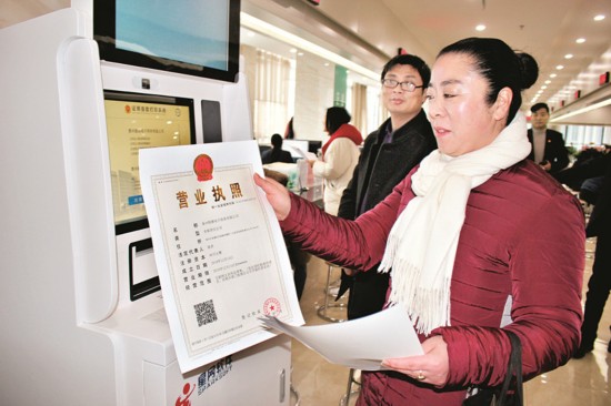 不到一分钟,陈君即从自助服务机上拿到了营业执照。钱宏斌摄