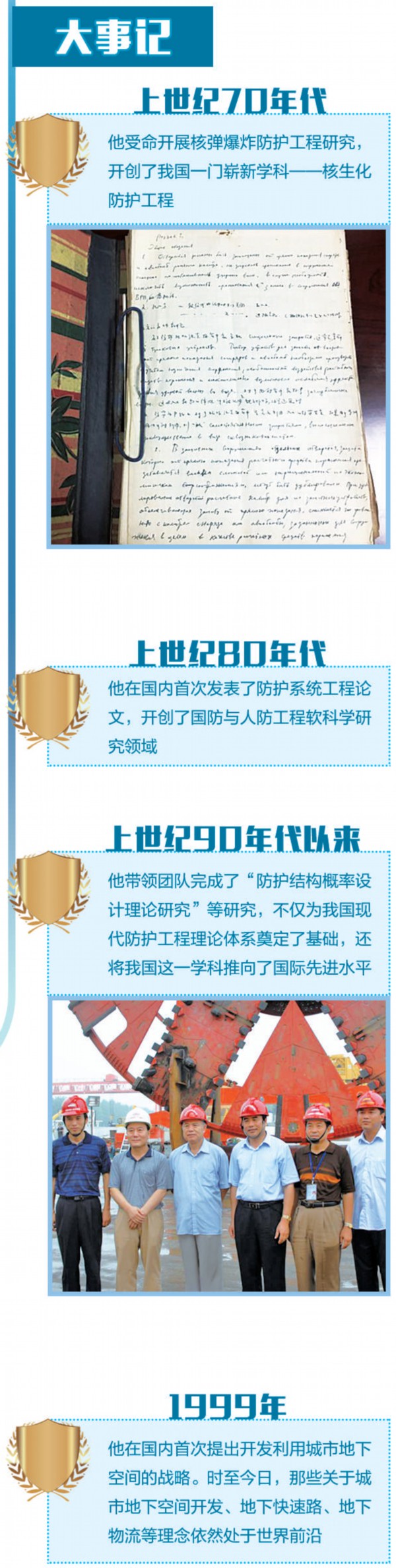 这从一连串的“率先”中便可管窥一斑:在国内首次应用空气动力学原理与方法解决防护工程孔口防护的一系列计算问题;率先研制土中柔性轻型野战防护工事,解决当时急需快速构筑大批量工事的紧迫需求;率先研制出国内第一套空中核爆压力试验模拟装置,为构建地下工程防护理论技术体系提供了必备……