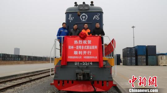 图为郑昆多式联运班列满载货物从郑州圃田站顺利开出。 薛垣 摄
