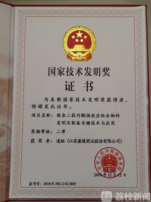 刚刚在北京结束的国家科学技术奖励大会上,由中国药科大学与江苏康缘药业股份有限公司 合作科研成果“银杏二萜内酯强效应组合物的发明及制备关键技术与应用”项目,荣获国家 技术发明二等奖。该项目由康缘药业研究员肖伟作为第一完成人,是本年度国家技术发明奖 获奖项目中唯一的药物研究项目。