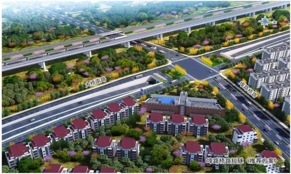 花山路西-大桥南路东受到高速铁路、新长铁路、北潮河的影响,采用地道快速路。