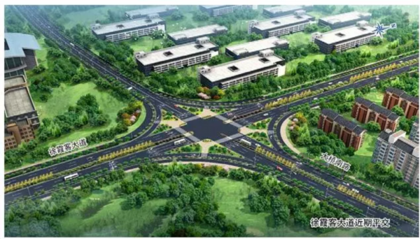 ◎高架跨虹桥路落地后采用双向六车道地面快速路形式至终点接紫金路,与徐霞客大道近期形成平面十字交叉。