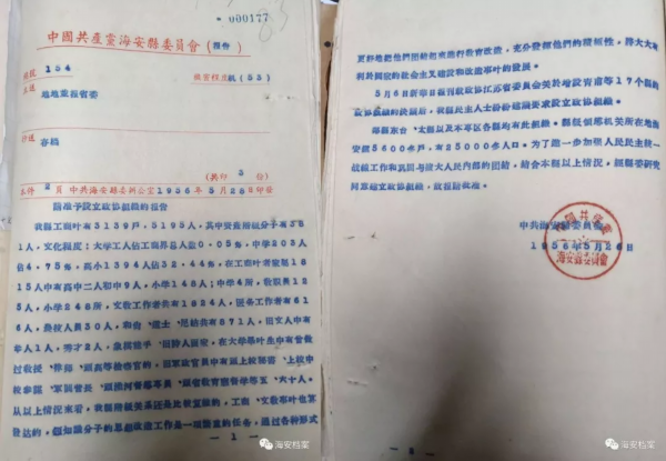 ▲中共海安县委员会关于设立政协组织的报告。