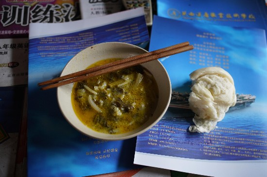 2018年6月20日,是马玉山80岁大寿,他的午餐是一个馍还有一碗酸菜。