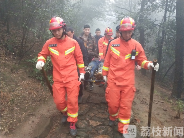 1月10日下午15时25分,宜兴市119指挥中心接到报警称,位于宜兴市张渚镇龙池山接近山顶处,有一人腿部受伤被困山上,请求消防救援。