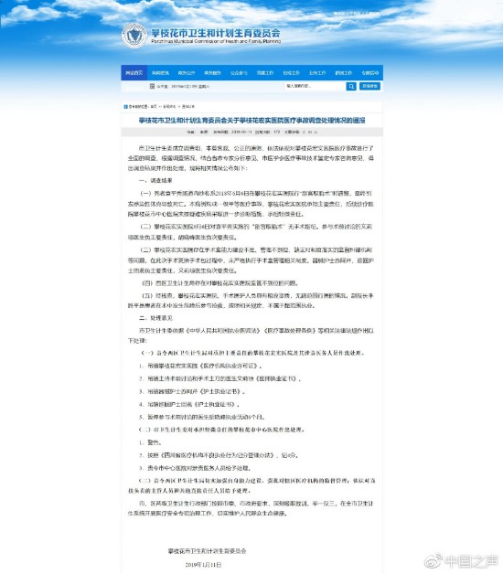 (二)市卫生计生委对承担轻微责任的攀枝花市中心医院作出处理。
