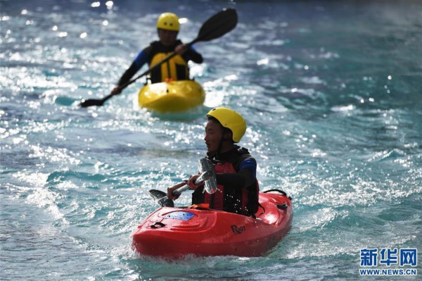 这是1月3日在羊八井温泉池拍摄的皮划艇表演。新华社记者 普布扎西 摄