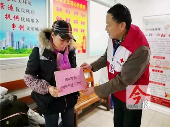1月5日上午,柳州市红十字会副会长周双申带领工作人员来到柳州市中医医院,为“善心女孩”卢明华的家属送上2万元救助金。