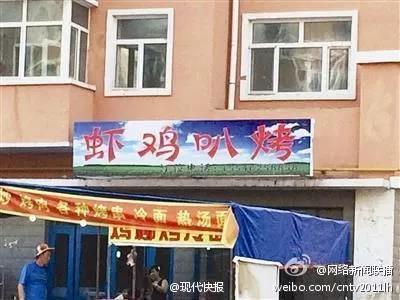 2014年6月,黑龙江省齐齐哈尔市一家烧烤店起名“虾鸡叭烤”,引起市民和媒体关注。经媒体报道后,当地工商和城管部门拆除了烧烤店牌匾,要求业主立即停业整改。城管执法人员将起名低俗的牌匾摘下,工商执法人员现场下达责令改正通知单,责令烧烤店立即停业整改。