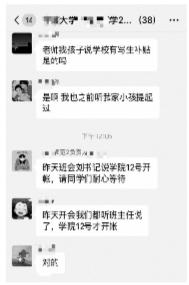 昨日,北青报记者致电涉事学校的学工办询问此事。谈及建立“家校群”的出发点,学院的钱老师表示,对学生来说,高中的时候,学校和家长管得比较严,进入大学之后他们是比较放松的,可能带来一些问题。
