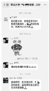 钱老师说,建群之前做了一些调研工作。很多家长说,孩子进了大学之后,连老师叫什么都不知道,感觉应该进一步加强联系。“我这里200多名家长,仅有一名学生家长说‘不太方便’,(他家的)具体情况,之后我会单独跟学生了解一下。”