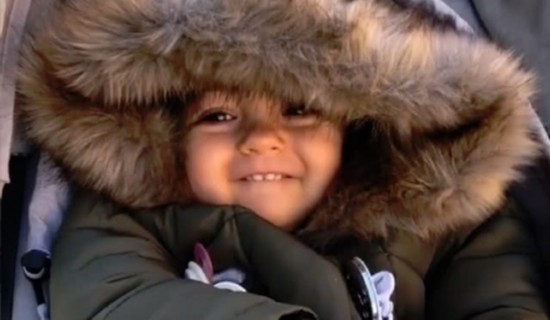 看起来都灵的天气比较寒冷,阿拉娜-玛蒂娜穿着厚厚的棉服坐在婴儿车里,乔治娜则在后面推着她。面对镜头,玛蒂娜一直在叫“爸爸”,小家伙儿萌萌的声音足以融化整个世界。