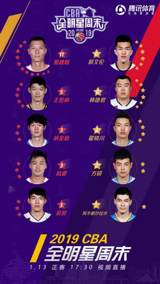 腾讯体育2019年1月13日讯 2019年CBA全明星正赛将在今晚打响,腾讯体育将在17:30(比赛19时打响)开始进行视频直播,以下是腾讯体育为您带来的前瞻——