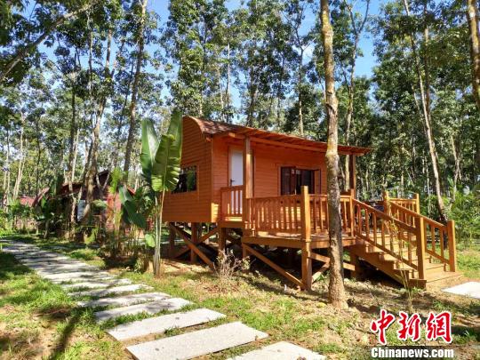 橡胶林荫下造型别致的木屋旅馆。张茜翼 摄